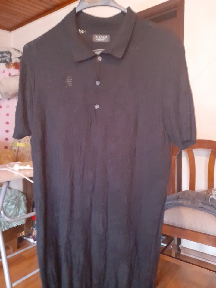Siyah renkli, düğmeli, kısa kollu ve yakalı erkek polo tişört. Gevşek kesimi ve ipeksi dokusuyla günlük sokak stiline uygundur. 42 bedendir ve deforme olmamıştır.