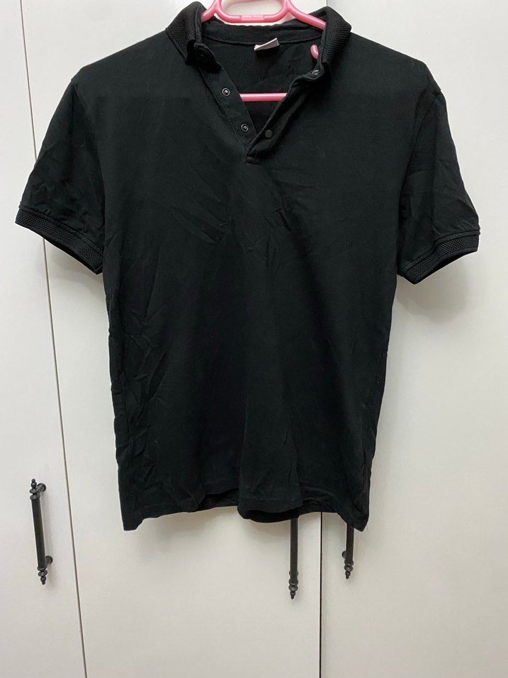 Siyah, kısa kollu ve yakalı erkek polo tişört. İnce kesimli ve rahat sentetik kumaştan, günlük kullanıma uygun.