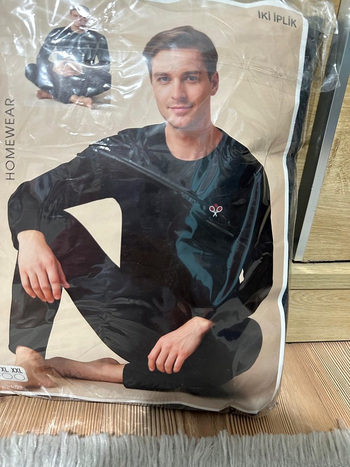 Siyah renk, rahat kesim, uzun kollu ve bisiklet yaka erkek pijama. Baskılı desen ve fermuarlı detay içerir. Midi boy rahat kesim. Marka: IKI IPLIK.