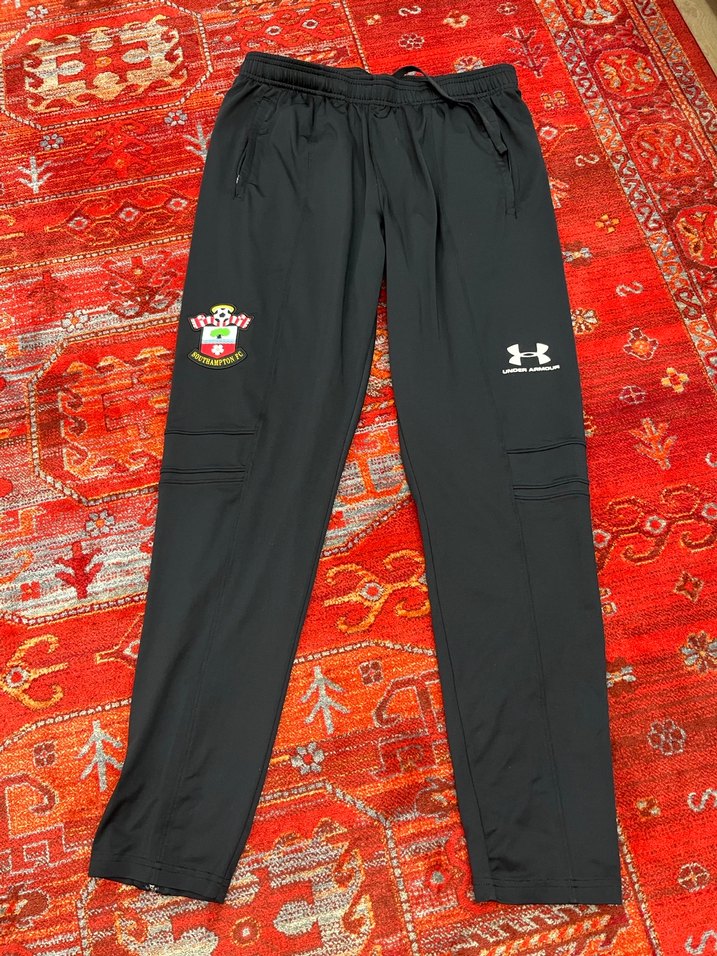 Yumuşak ve sıcak kumaştan siyah erkek fermuarlı, rahat kesim eşofman altı. Üzerinde Southampton FC ve Under Armour logoları bulunur.