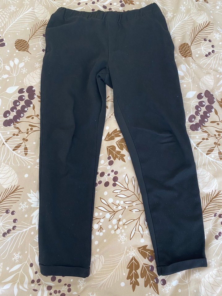 Siyah, rahat kesim ve lastikli bel bandına sahip erkek pantolon. Midi boy, günlük kullanıma uygun konforlu model.