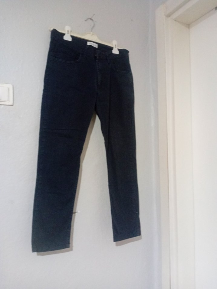 Siyah, regular fit ve normal boyda denim erkek pantolon, gündelik kullanıma uygun sade ve şık bir sokak stili sunar.