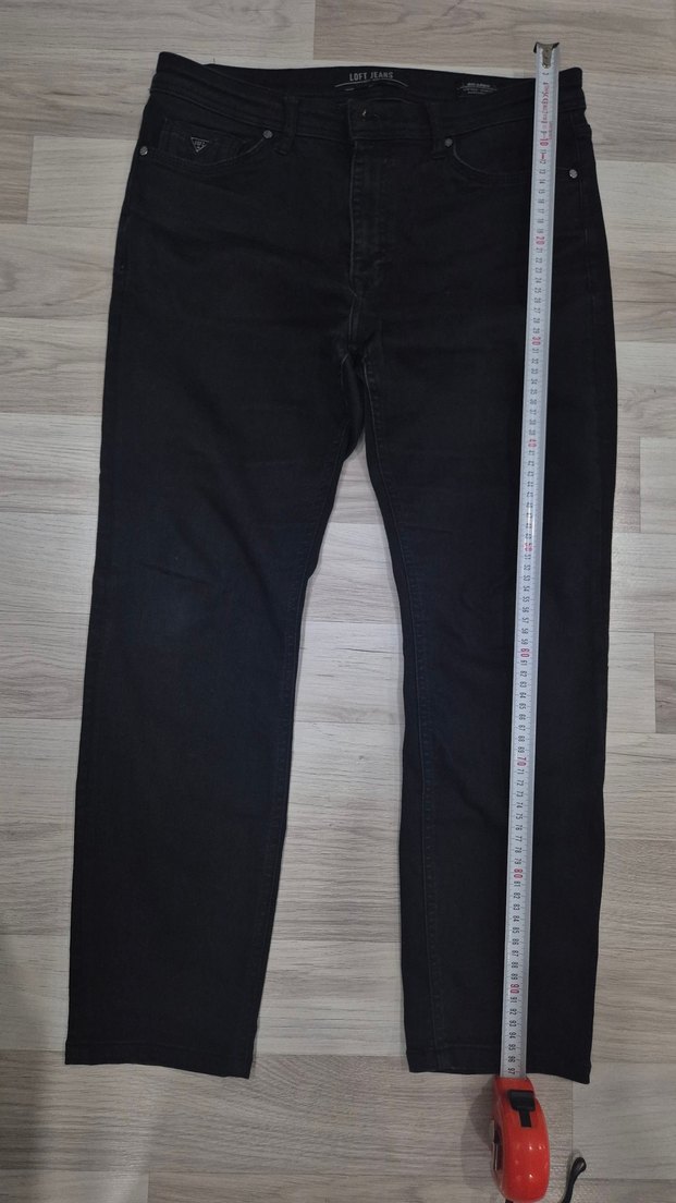 Siyah renkli, elastik denimden yapılmış, regular fit ve midi boyda erkek kot pantolon, günlük kullanım için uygundur.