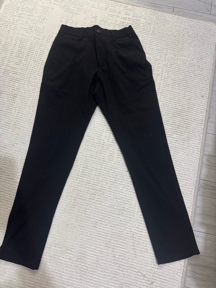 Siyah renkli, regular fit ve normal boyda erkek pantolonu. Düz, sentetik kumaştan, günlük rahat kullanıma uygun spor şıklık sunar.