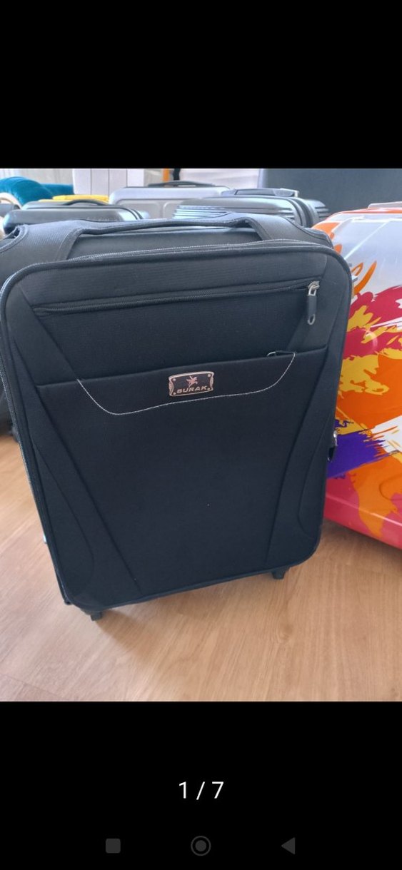 Düz siyah erkek seyahat valizi tokalı ve desen içermeyen yüzeyiyle iş ve günlük kullanıma uygundur.
