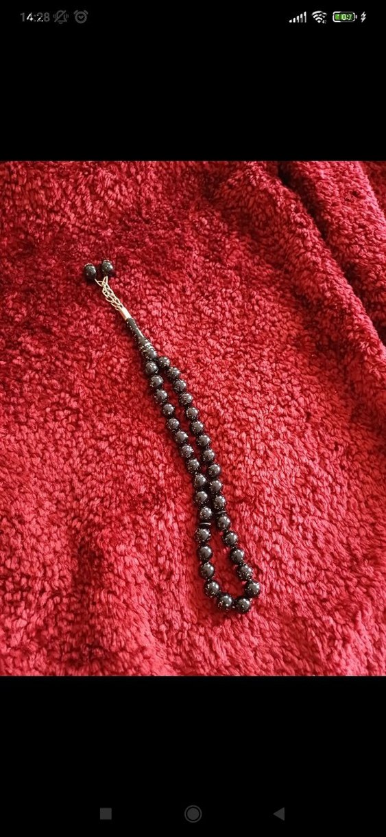 Siyah, konvansiyonel tarzda erkek tesbih boncukları, koyu renkli, parlak boncuklardan oluşur ve rahat bir his sunar.Simli ve çok şık...