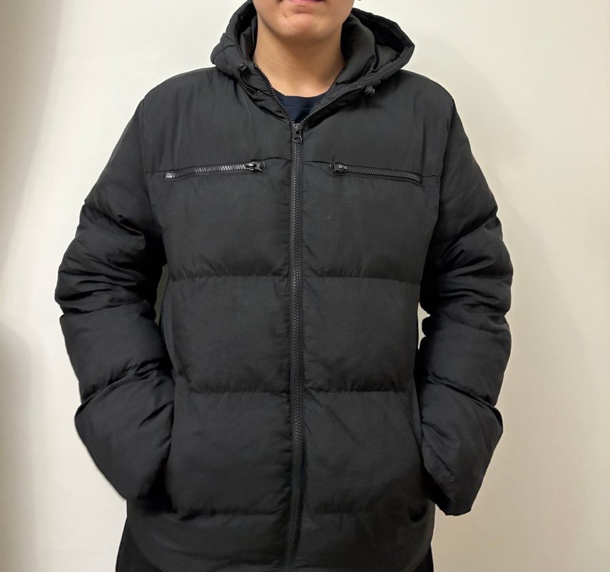 Bu siyah erkek mont, yüksek yakalı ve şişme tasarımlı, dar kesimlidir. Uzun kollu, fermuarlı ve göğüs cepli, günlük sokak stili için uygundur. Sportive marka m beden