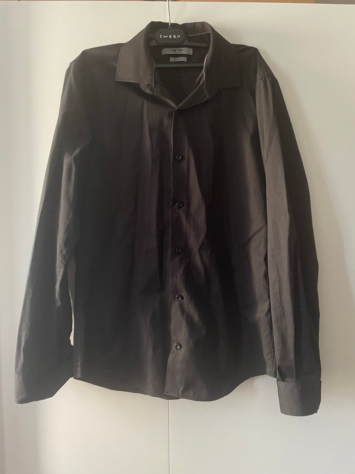 Siyah kumaştan yapılmış, düğmeli, uzun kollu erkek gömleği. Normal midi boy ve regular fit kesime sahiptir. Ofis ve sokak stili için uygundur. Sıfır ayarında max 1 kez giyilmiştir