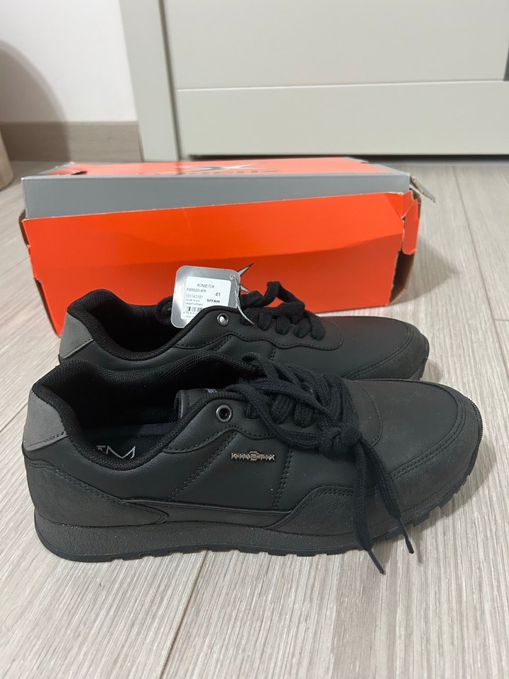 Siyah renkli, velcro özellikli erkek spor ayakkabısı. Kauçuk malzemeden üretilmiş, sportif ve günlük sokak stili için uygundur. Hediye gelmiştir. Orjinal üründür. Sıfır, etiketli kutulu.