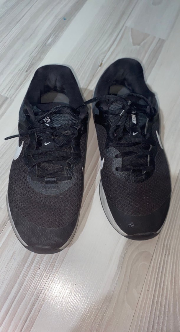 Siyah erkek spor ayakkabısı, bağcıklı tasarım ve kauçuk tabanlıdır. Spor ve sokak stiline uygundur, trend rahat giyim için idealdir. Göründüğü gibi bi sorunu yok sadece önünde hafif bi yırtık oldu deri yaptırdım ayakkabıcıda gayet iyi durumda