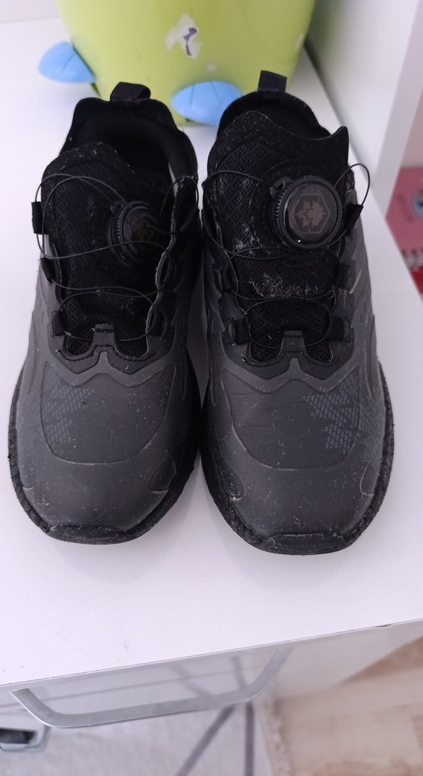Siyah, bağcıklı erkek spor ayakkabısı, kauçuk malzemeden, sokak ve athleisure tarzına uygun. Trend belirleyenler için ideal. 35 numarA