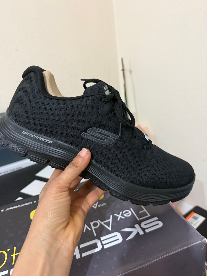 Bağcıklı, siyah erkek spor ayakkabısı, kauçuk tabanlı, spor ve günlük kullanıma uygun stok durumu 44 numara