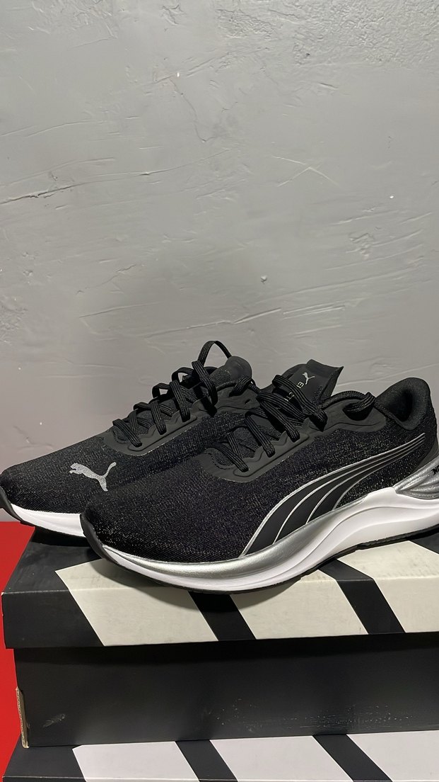 Siyah kadın spor ayakkabısı, takoz topuklu ve cırt cırtlıdır. Kauçuk tabanlı, sokak stili ve spor için uygundur.