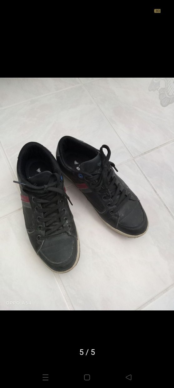 Siyah erkek spor ayakkabısı, kauçuk tabanlı ve Velcro bantlıdır. Günlük sokak stili ve spor için uygundur, desen içermeyen sade tasarıma sahiptir.