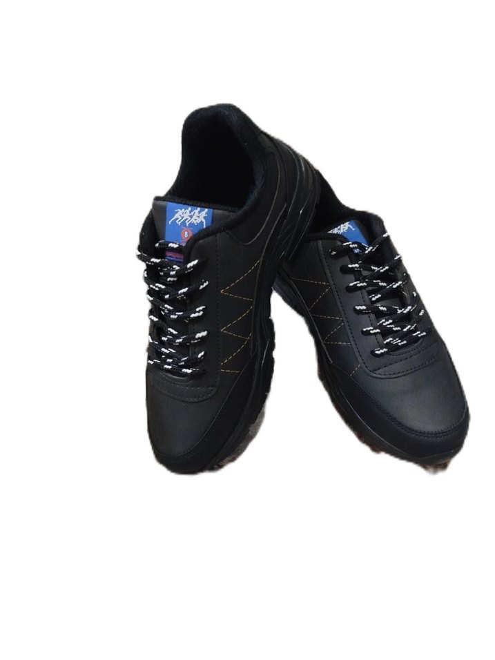 Dayanıklı kauçuk malzemeden yapılmış, velcro ve bağcıklı siyah erkek spor ayakkabısı, trend sokak stili ve rahat kullanıma uygundur.