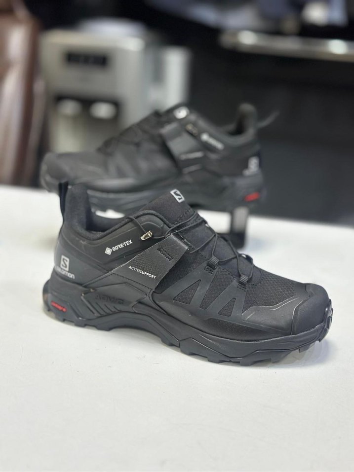 Siyah erkek spor outdoor ayakkabı, kauçuk tabanlı ve baskılı detaylıdır. Ayarlanabilir cırt cırtlı bantlarla trend ve avangart bir tarz sunar. ️