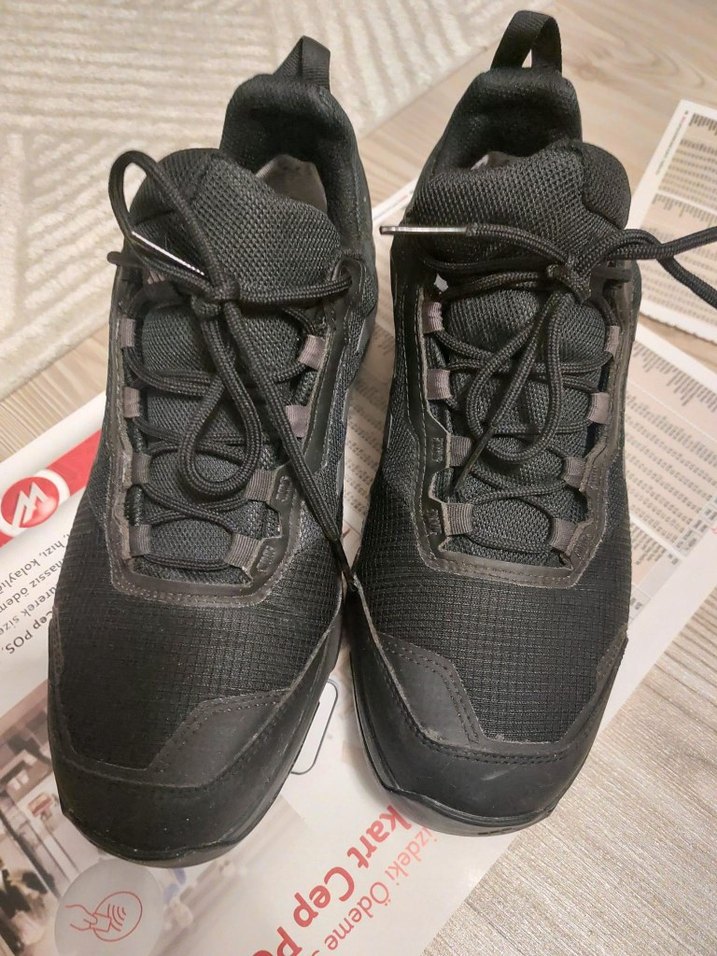 Siyah renkli, bağcıklı erkek dış mekan ayakkabısı. Kauçuk malzemeden üretilmiş, spor ve sokak tarzı için uygundur. ♂️
