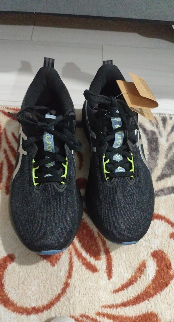 Siyah renkte, baskılı detaylı erkek spor ayakkabısı. Kauçuk tabanlı ve Velcro bantlı, spor ve günlük kullanıma uygun.