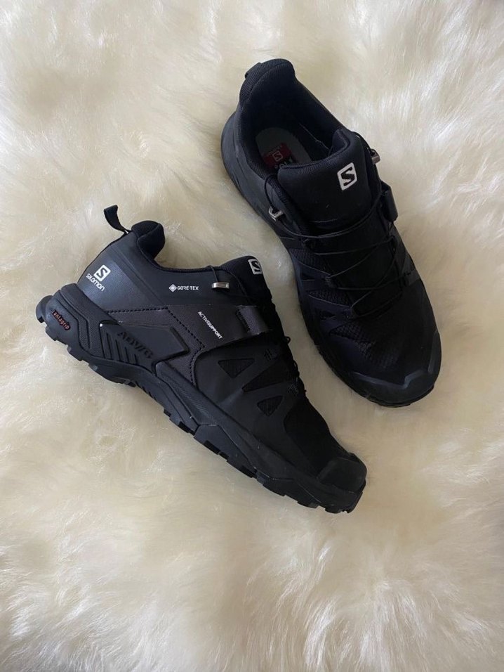 Siyah erkek spor outdoor ayakkabılar, kauçuk tabanlı ve Velcro bantlı, trend sokak stili için uygundur.