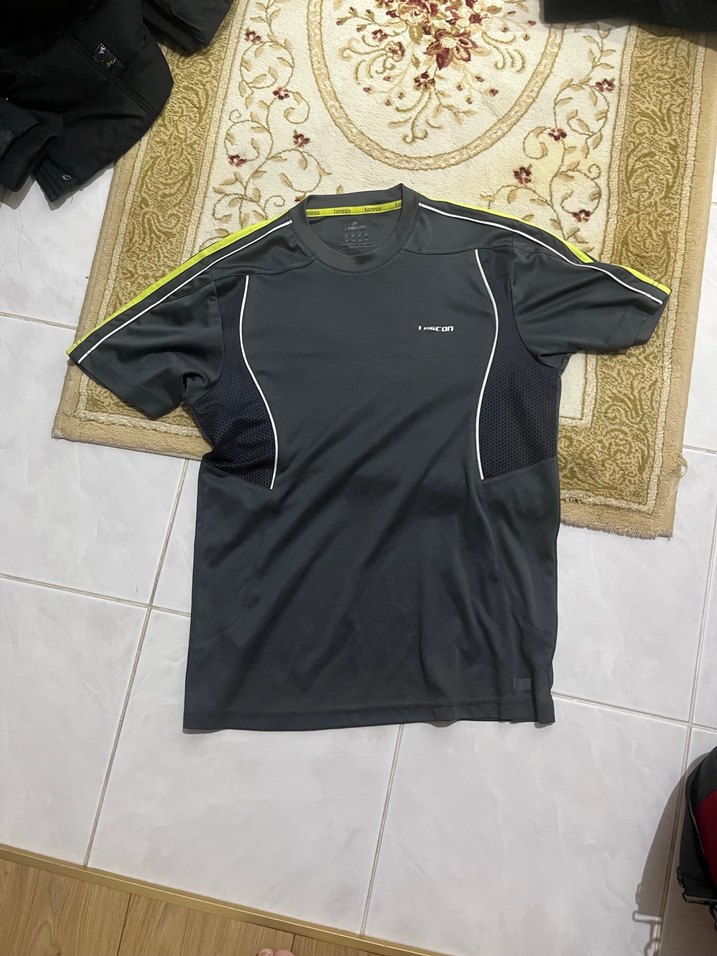 Siyah, dar kesim erkek spor tişörtü, kısa kollu, yuvarlak yaka ve cırt cırt detaylı. Sentetik kumaştan üretilmiştir, spor ve sokak stili için uygundur. ♂️