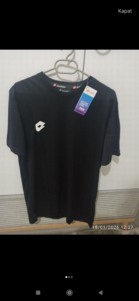 Siyah, kısa kollu, yuvarlak yaka, bol kesim erkek spor tişörtü, baskılı logo ve Velcro detaylı, sentetik kumaştan yapılmıştır. ♂️