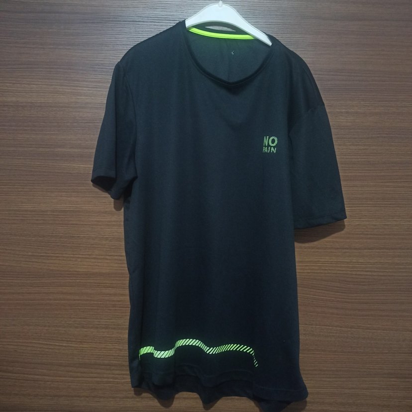 Siyah, kısa kollu, yuvarlak yakalı erkek spor tişörtü, baskılı ve Velcro detaylı, rahat kesim, sentetik kumaştan üretilmiştir. ♂️