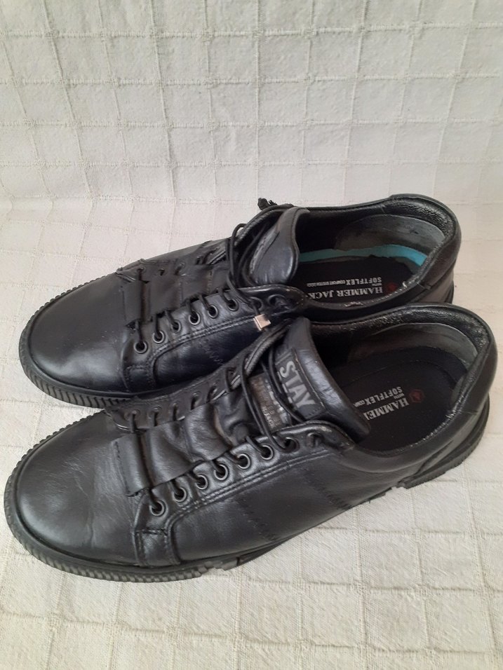 Siyah renkli, erkekler için sokak stiline uygun bağcıklar, koyu tonlarıyla günlük ayakkabılara uyum sağlar. Gercek deri Hummer Jack ayakkabi iç taban 26cm dis taban 28cm. 40.5 41 uygun. olculere göre alin numera yazmiyor