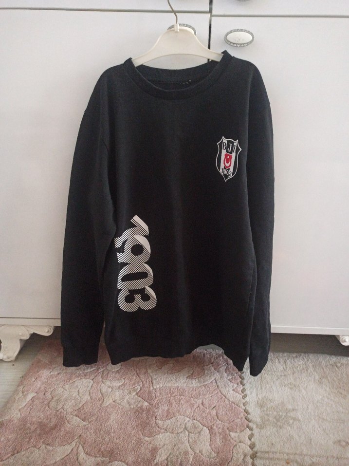 Siyah erkek sweatshirt, bisiklet yaka ve uzun kolludur. Gevşek kesim, 1903 baskısı ve örme dokusu ile trend sokak tarzına uygundur.