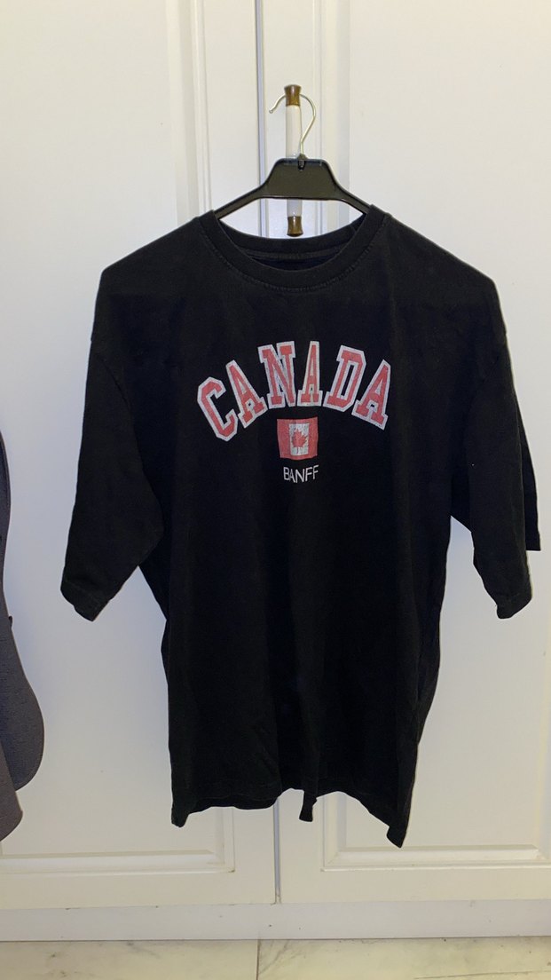 Bu siyah erkek tişörtü, kısa kollu ve yuvarlak yakalıdır. 'CANADA' ve 'BANFF' baskılı, bol kesim ve yumuşak, sıcak kumaştan üretilmiştir. Spor ve günlük kullanım için uygundur. ️
