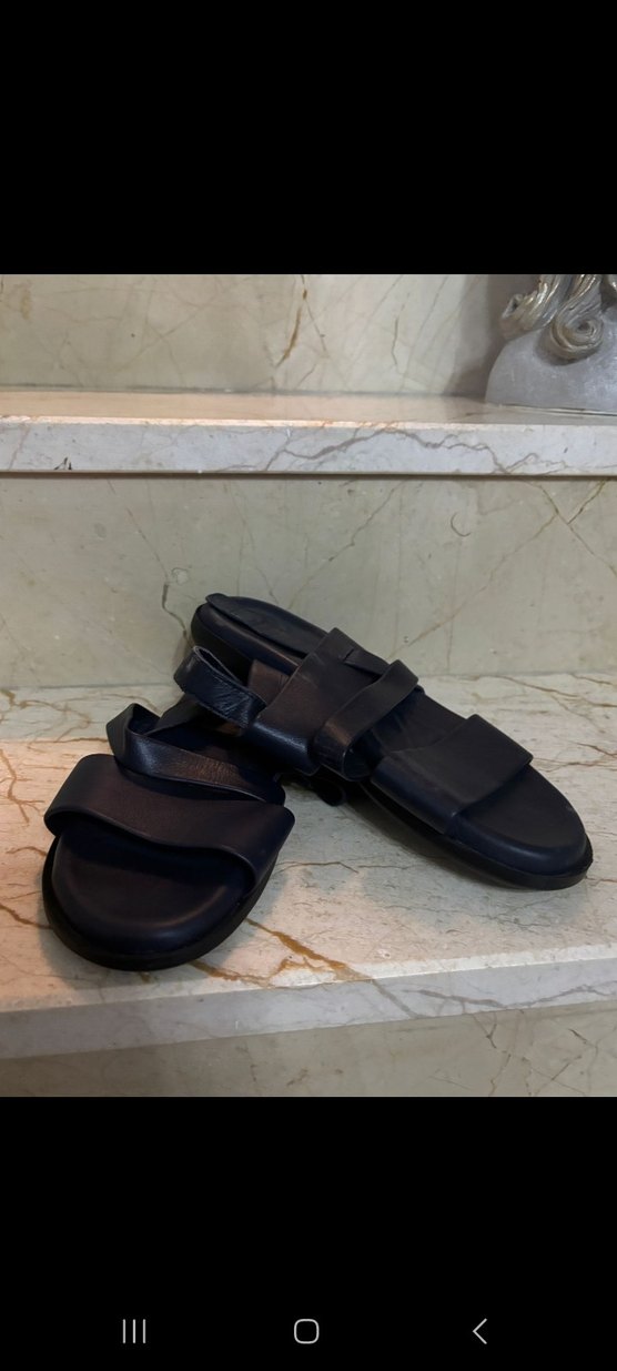 Siyah Erkek Tokalı Deri Sandalet
