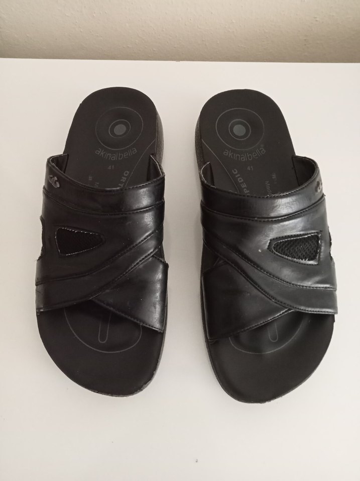 Siyah tokalı erkek sandaletler, dayanıklı kauçuk malzemeden üretilmiştir. Günlük kullanım için minimalist ve sade tasarım.