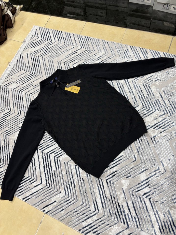 Bu erkek triko sweatshirt, bisiklet yaka ve uzun kolludur. Yumuşak sentetik kumaştan üretilmiş, günlük kullanım için uygun sade siyah renkte rahat bir modeldir.