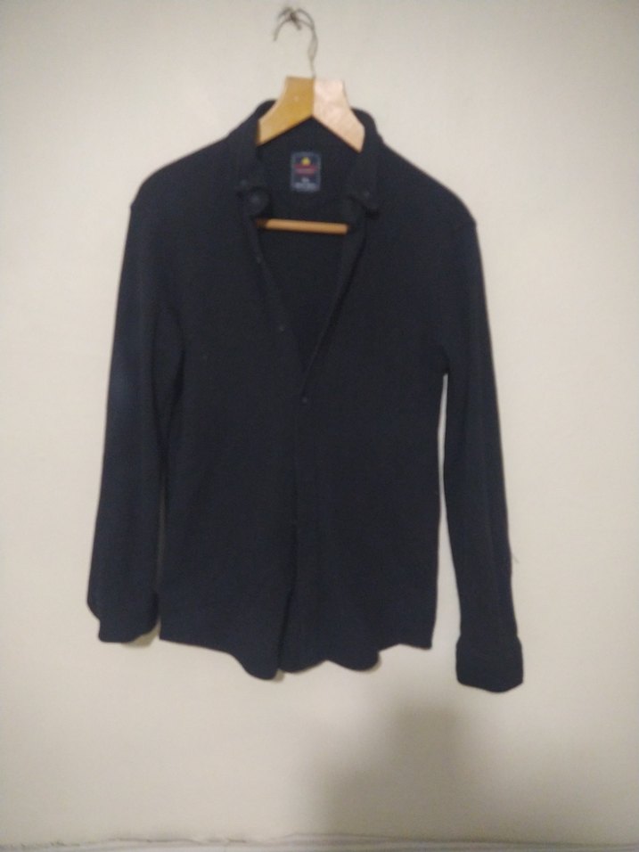 Siyah uzun kollu erkek gömlek, düğmeli ve kesik yaka detayına sahip, yumuşak ve sıcak kumaştan üretilmiştir. Günlük kullanıma uygun rahat kesim.