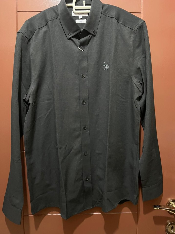 Siyah renk, uzun kollu, düğmeli, yakalı regular fit erkek gömlek.Ofis ve günlük sokak stiline uygundur. Slim fit M beden hic giyilmedi.