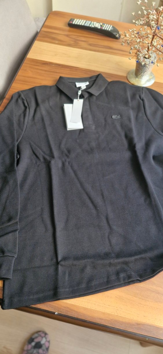 Siyah, uzun kollu, düğmeli yakalı ve yumuşak, sıcak dokulu kumaştan yapılmış bol kesim polo tişört. Günlük kullanım için uygundur. gardropsumdaa bunaa benzerr bi cok urun varr beklerim