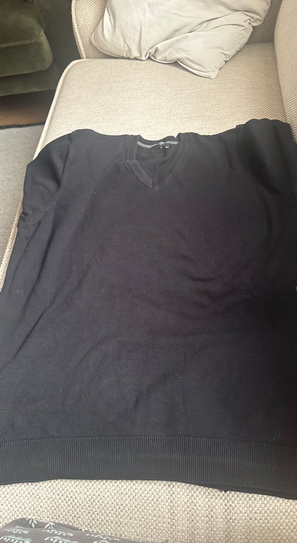 Siyah, v yakalı, ince ve normal boyda erkek kazak. Düz ve sade tasarımıyla günlük kullanıma uygundur.
