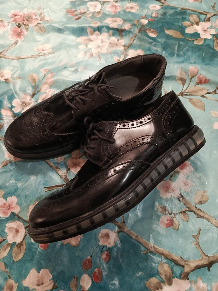Siyah, tokalı, kauçuk tabanlı erkek özel gün ayakkabısı. Düz desensiz ve gotik tarzda, modaya uygun bir tasarım sunar.