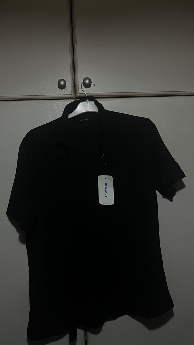 Erkekler için kısa kollu, yakalı ve siyah renkli, sade ve şık polo gömlek. Günlük kullanıma uygun, rahat ve modern tarzda.