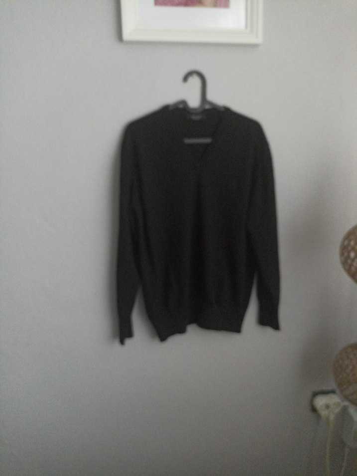 Siyah renk, uzun kollu ve V yakalı erkek yün kazak. Salaş kesimi ve sade tasarımıyla günlük kullanıma uygundur. Dar kalıptır.