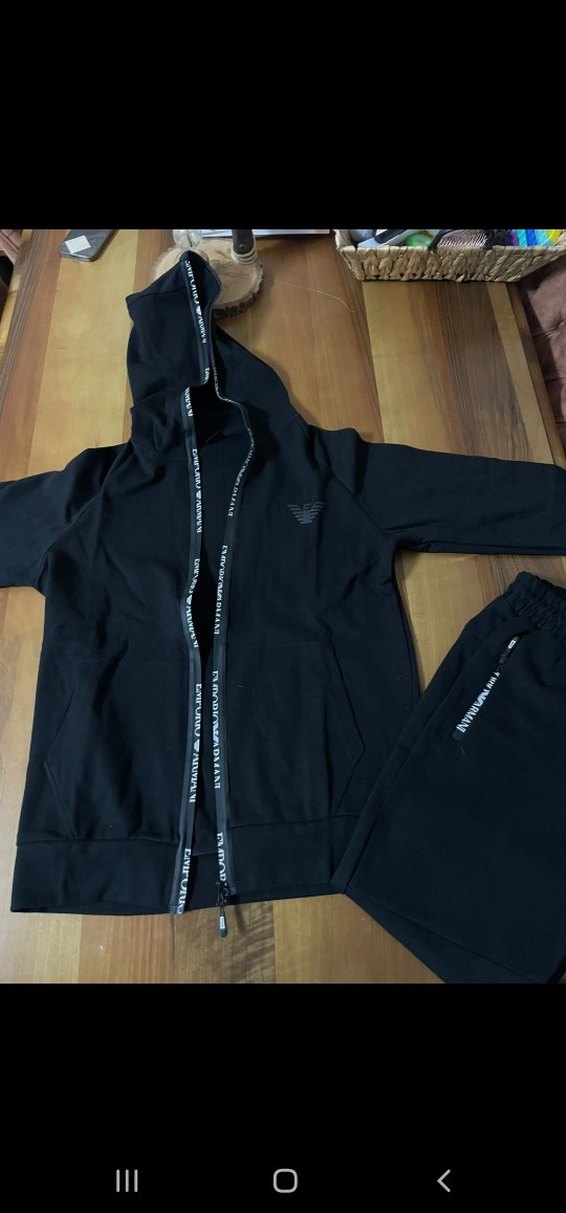 Siyah, dar kesim eşofman takımı, uzun kollu ve çentikli yaka detaylıdır. Fermuarlı kapüşon ve rahat pantolon ile günlük kullanıma uygundur.