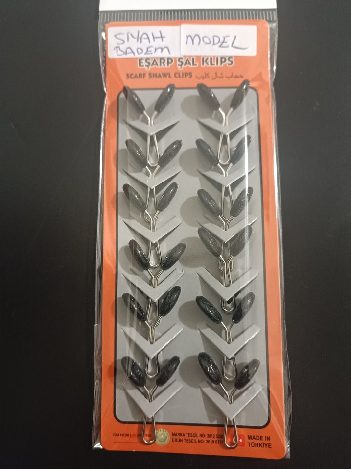 Siyah renkte badem model 12 adet paketli eşarp veya şal klipsi Eşarplarınızı sabitlemek için kullanılır.