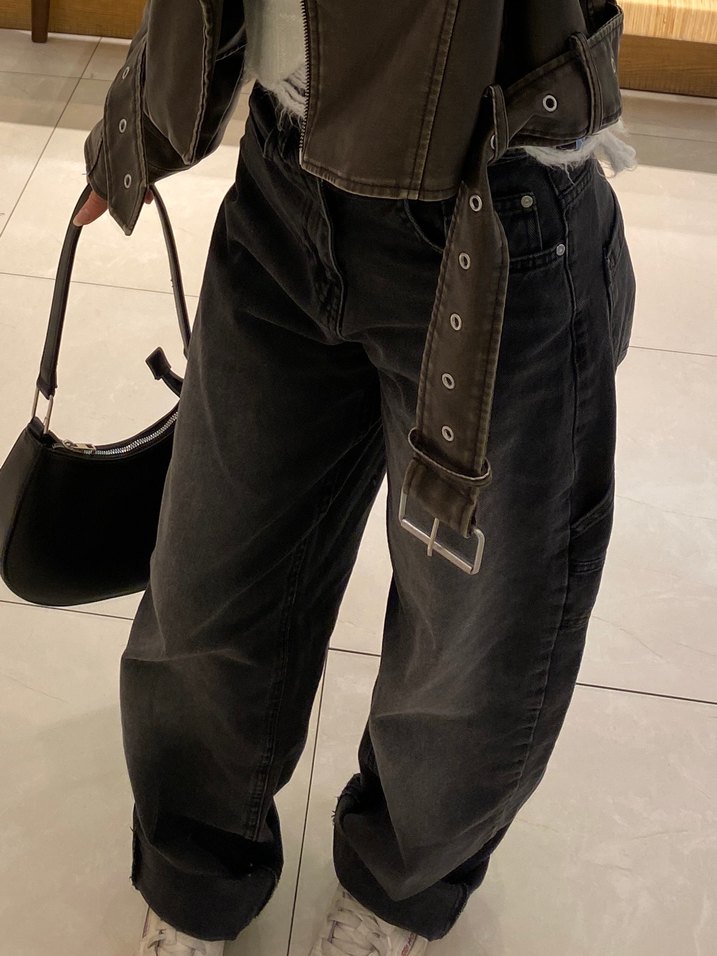 Siyah Eskitmeli Baggy Jeans