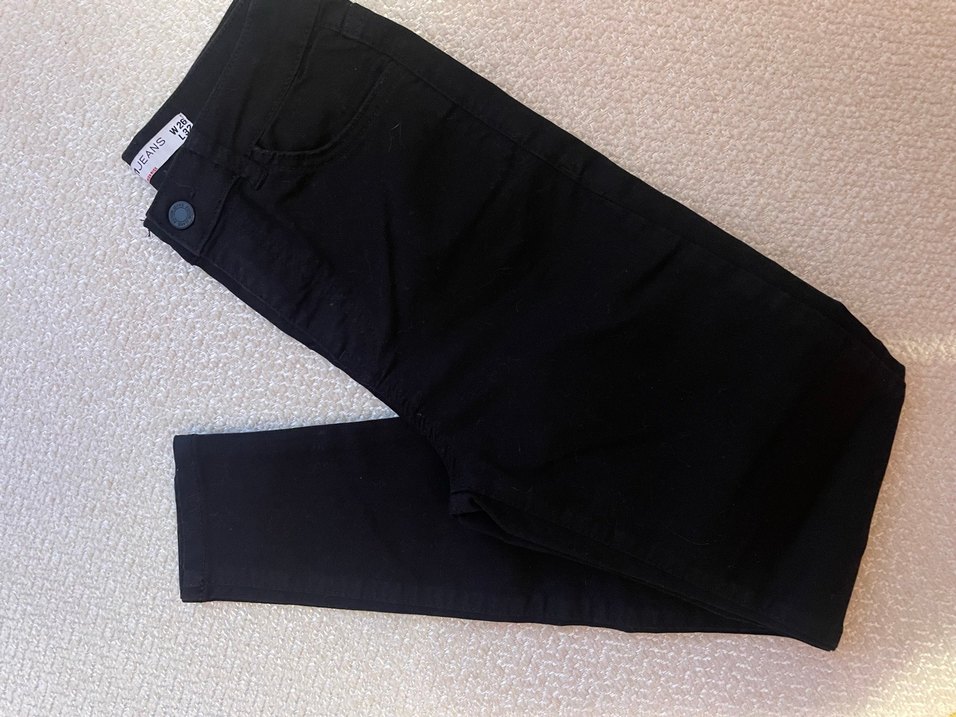 Siyah, esnek kumaştan yapılmış dar kesim kadın jean. Normal boyda, desen içermeyen ve günlük kullanıma uygun minimalist tarzda.