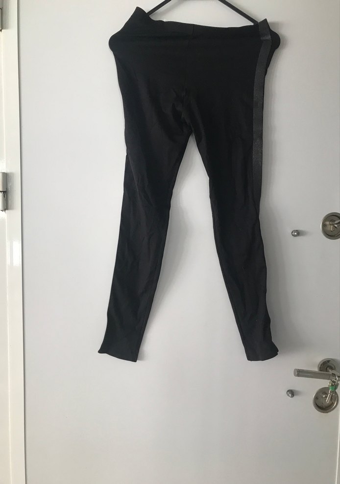 Siyah, esnek bel bantlı, sentetik kumaştan üretilmiş, spor ve günlük kullanıma uygun dar kesim tayt. ♀️