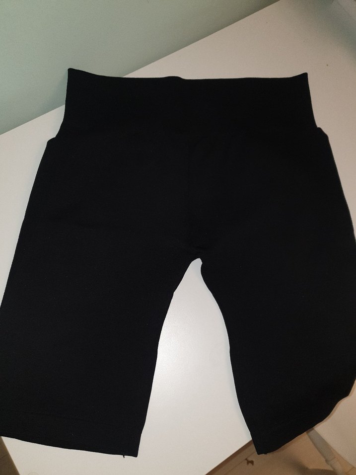 Siyah, esnek bel bantlı, kısa kesim erkek kadin icin sentetik kumaştan, spor ve sokak stiline uygun.