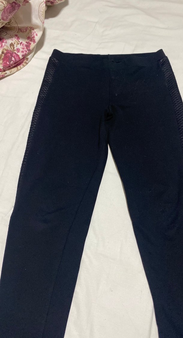 Siyah esnek yan detaylı, midi boy, dar kesim denim tayt. Spor ve günlük kullanıma uygun rahat bir tasarım.