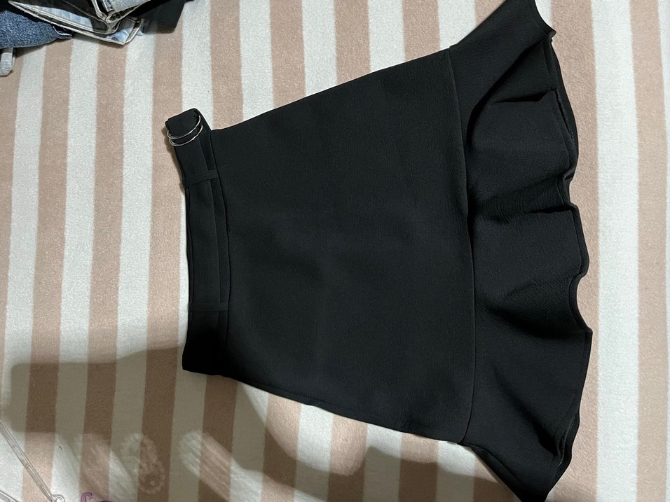 Siyah, kemer detayli etek, etek kısmı fırfırlı