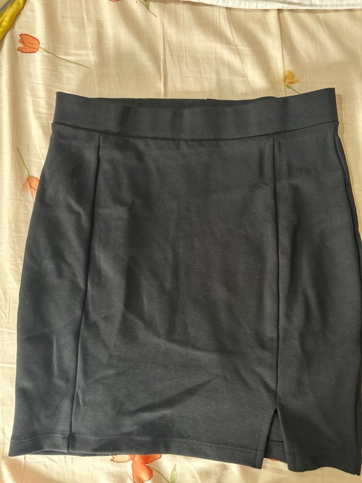 1-2 kez giyildi. Siyah, mini yırtmaçlı olan etek Günlük kullanım için uygundur. Beli lastiklidir. Trendyol markadır.