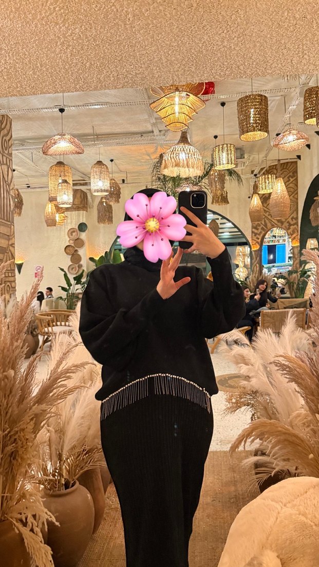 Sıyah eteklı taşlı kazak triko kumaşı