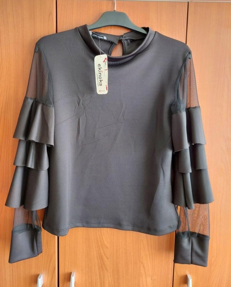 Siyah etiketli abiye bluz.